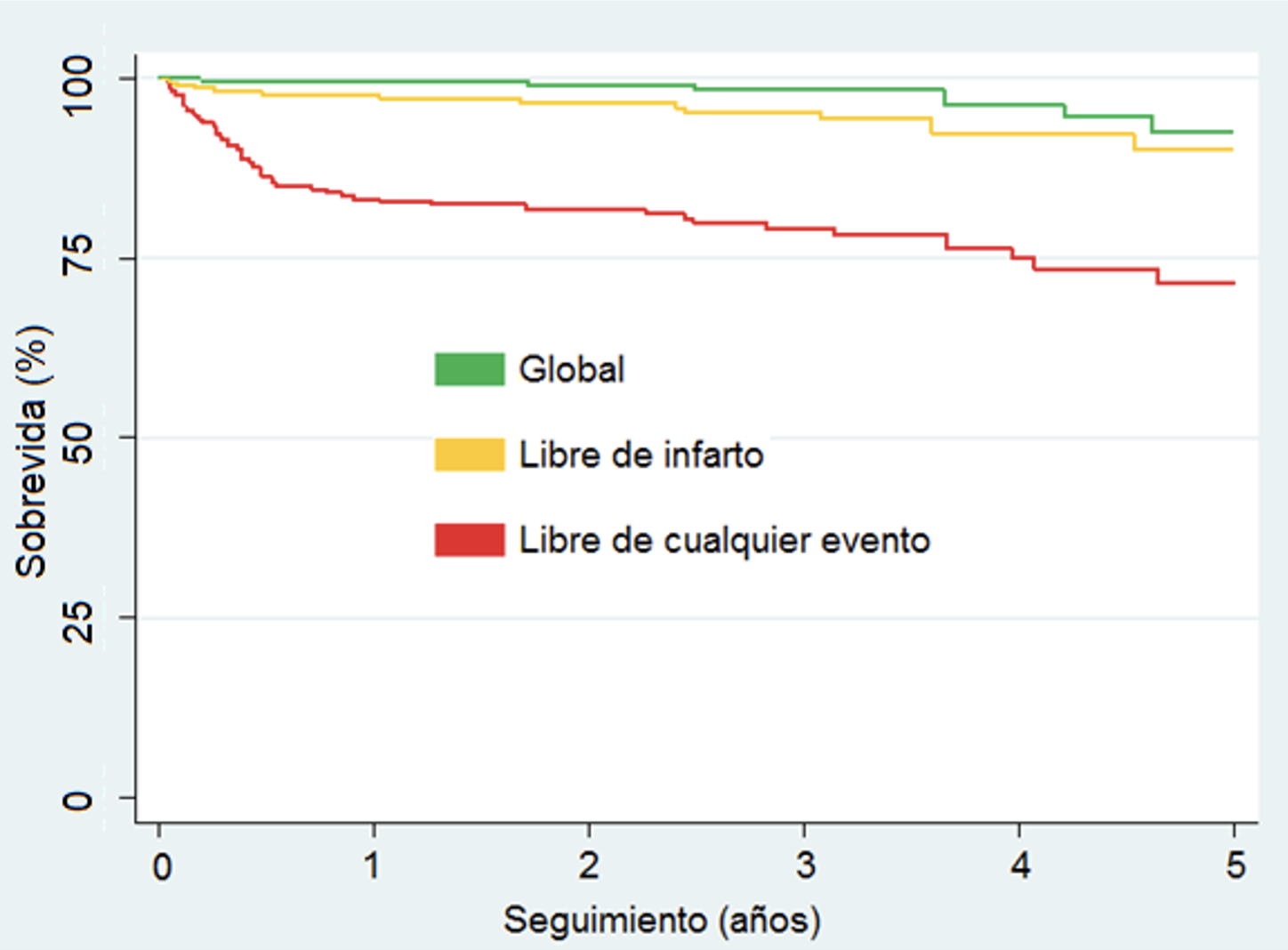 Figure 1.Sobrevida global, libre de infarto y libre de cualquier evento